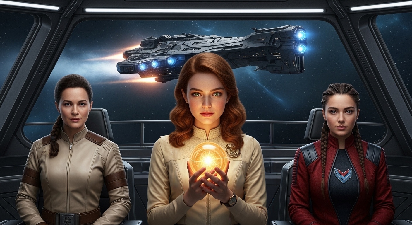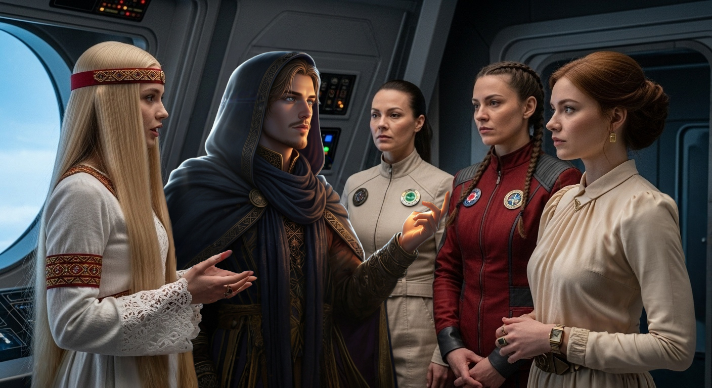 Свет от эфирийского корабля мягко отразился в глазах Дарины, Ларисы, Брониславы. «Аврора» ожила, её двигатели загудели увереннее.