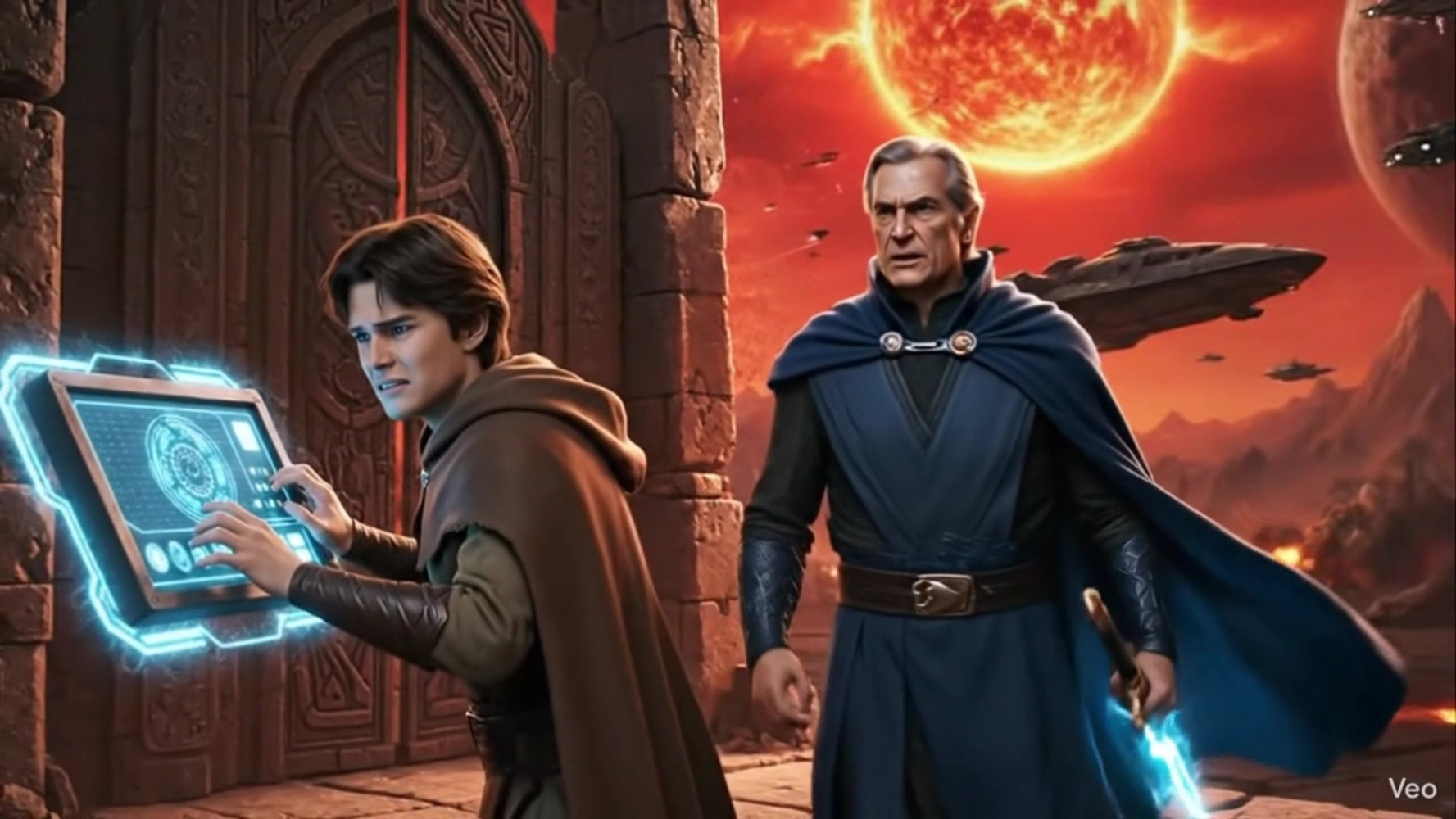 За его спиной, спокойный, как скала среди бушующего океана, стоял Мастер Элиан. Его плащ трепал горячий ветер, но рука твердо лежала на рукояти плазменного клинка. Он не смотрел на Склеп. Он смотрел на космопорт вдали, где последний эвакуационный транспорт пытался взлететь, но его двигатели сбоили.