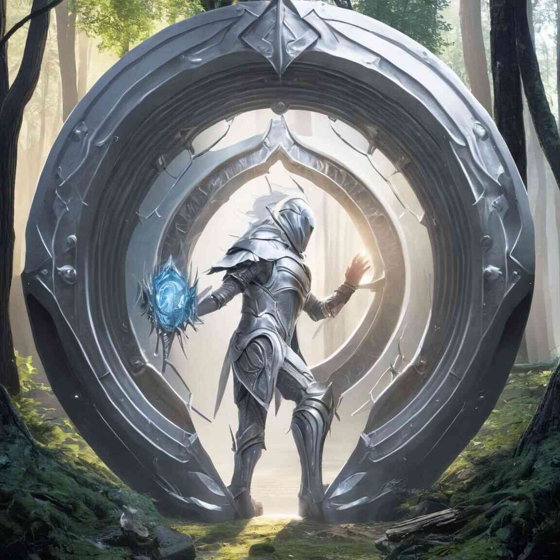 Все поспешили на улицу. Когда все вышли из дома, эльф Таранис протянул руки и проговорил заклинание. Открылся портал в виде круга, в котором на другой стороне были видны врата миров на Элбан горе.